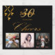 A bottle label for a glamourous 30th birthday party. Personalise and add 3 of your own photos, a name, age 30 and a date. Date of birth or the date of the party. Golden coloured letters. The word: Cheers, in faux gold written with a trendy hand lettered style script. Elegant, classic chic black background colour, decorated with faux gold party streamers.