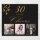 A bottle label for a 30th birthday party. Personalize and add 3 of your own photo from Your/her life, like friends, family, interests, dream goals, pets, age 30 and a date. Date of birth or the date of the party. Golden colored letters. The word: Cheers, in faux gold written with a trendy hand lettered style script. Elegant, classic chic black background color, decorated with faux gold party streamers.