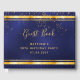 A 30th Birthday Party Guest Book for him, boy, guy in dark blue, navy blue background. The blue colour is uneven.  With a faux gold frame and golden confetti sprinkle, golden coloured letters.