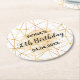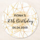 30th birthday party gold geometric white monogram round paper coaster