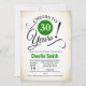 30th Birthday Party Invitation in Green White Black with retro creamy background. Cheers to 30 years! Can be personalised into any year.