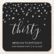 30th Birthday Party Modern Black Silver Confetti Square Paper Coaster