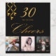 A bottle label for a glamorous 30th birthday party. Personalize and add 3 of your own photos, age 30 and a date. Date of birth or the date of the party. Golden colored letters. The word: Cheers, in faux gold written with a trendy hand lettered style script. Elegant, classic chic black background color, decorated with faux gold party streamers.