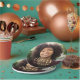 These custom 30th birthday paper plates feature the guest of honour's photo and birthday, along with the word "Cheers" in elegant gold-coloured calligraphy script. A dark screen helps make the text pop. A great way to celebrate someone who's turning thirty!