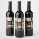 A bottle label for a 30th birthday party for a guy, celebrating his life with a collage of 8 of your own photos. Templates for a name, age 30 and a date. Date of birth or the date of the party. White coloured letters. Black background.
