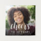 This custom 30th birthday tapestry features the guest of honour's personalised photo, name, and birthday, along with the word "Cheers" in elegant white calligraphy script. A dark screen helps make the text pop. A great way to celebrate someone who's turning thirty!