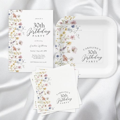 30th Birthday Party Wildflowers Watercolor Floral Napkin