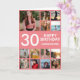 30th Birthday Photo Collage 13 Photos Pink & White Card