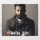 Template for Your photo. White text overlay: Hello 30! A label for a 30th birthday party for guys.
