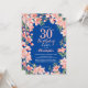 30th Birthday Pink Floral Flowers Blue Birthday Invitation. For further customisation, please click the "Customise it" button and use our design tool to modify this template.