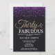 30th Birthday invitation. Thirty and Fabulous. Black Purple and Gold Glitter. Adult Birthday Party. For Men or Women. For further customisation, please click the "Customise it" button and use our design tool to modify this template.