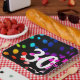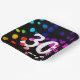 Neon rainbow dot pattern on black background for 30th birthday party.
