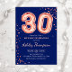 30th birthday party invitation. Elegant design in faux glitter rose gold and navy blue. Invite card features rose gold number 30 balloons and script font. Perfect for a stylish bday celebration. Message me if you need custom age.