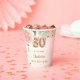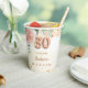 For an elegant 30th birthday party. A white and golden watercolored background. On the front and the back: Personalise and add a name and a date. Decorated watercolored rose gold and blush pink florals, eucalyptus greenery and faux sparkles. Nr 30 is written with a balloon style font.