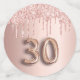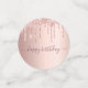 Girly and feminine confetti for a 30th birthday party table setting. A rose gold faux metallic, foil looking background decorated with faux rose gold glitter drips. Personalise and add her name/text. Dark rose gold coloured letters. Some confetti chips with name and date, others with number 30 written with a balloon style fonts, and with the text Happy Birthday.