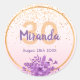 Glamourous with elegant and modern rose gold, blush pink gradient backdrop for a 30th birthday. With a faux gold frame, and ultra violet and purple coloured watercolored flowers and golden confetti rain. Templates for name, age and date, purple and golden coloured letters.