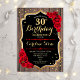 Rustic 30th Birthday Invitation. Elegant design with dark brown wood pattern, red roses and faux glitter gold. Features script font and confetti. Perfect for a stylish birthday party. Customise with your own details.