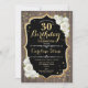 Rustic 30th Birthday Invitation. Elegant design with dark brown wood pattern, white roses and faux glitter gold. Features script font and confetti. Perfect for a stylish birthday party. Customise with your own details.