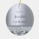 Modern, stylish and glamourous for a young woman's 30th birthday party. A faux silver metallic looking background with an elegant faux silver bow, ribbon and sparkle. The name is written with a modern black hand lettered style script. Template for a date (date of birth or the date of the party) and age 30. Perfect as a gift, favour, keepsake or as party decoration.