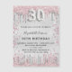 A modern, stylish and glamourous invitation magnet for a 30th birthday party. A faux silver looking background, decorated with pink and faux silver glitter, sparkles. Personalise and add your name and party details. Number 30 is written with a balloon style font, script.