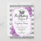 30th Birthday - Silver White Stripes Purple Roses Invitation