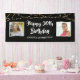 Celebrate a 30th or any age birthday and/or or decorate for a party with this custom banner sign featuring two photos (perhaps THEN and NOW pictures) and gold and white string lights in your choice of colours and/or font style. The sample is shown with white brush script typography on a black background. Make changes in EDIT. BANNER OPTIONS:  The sample is shown in the 2.5x6' size; other sizes are available on the ordering page as well as the option of transferring the design to a foam board, poster, tapestry or other product or have the designer convert it to a DIGITAL DOWNLOAD file BEFORE ordering to print locally. ASSISTANCE:  For help with design modification or personalisation, colour change, resizing, transferring the design or converting to a Download file, contact the designer BEFORE ORDERING via the Zazzle Chat MESSAGE tab or email makeitaboutyoustore@gmail.com.