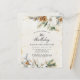 One of our most popular new winter floral designs on budget paper to help you lower your costs. If you prefer it is also available on cardstock. This elegant winter floral features white flowers nestled in greenery and pinecones with golden accents. The soft ivory white background frames it.