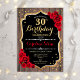 30th Birthday Invitation. Rustic design with barn wood patten and faux glitter gold. Features red roses and stylish script font. Perfect for an elegant birthday party.