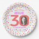 30th custom photo colourful coral confetti birthda paper plate