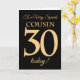 30th Gold-effect on Black for Cousin Birthday Card