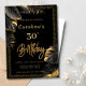 30th Modern Black & Gold Floral Glitter Birthday Invitation