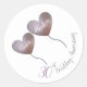 Personalized 30th wedding anniversary round stickers with a purple heart balloon design.