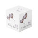 This photo cube shows 2 purple heart balloons and can be personalized with the names of the happy couple.