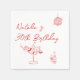 As you see this unique and elegant birthday napkin has a well designed template. With red hand drawn cocktail girl with champagne bottle and glass and disco ball and whimsical hand written name. All on white background. Which you can customise easily by clocking on the personalise button.