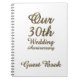 Our 30th Wedding Anniversary Party Guest Book Chic Elegant Gold Typography White Pearl Wedding Spiral Notebook