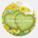 Refreshingly beautiful yellow flowers surrounding two green hearts floating on a soft golden sunshine curve across these custom 30th wedding anniversary celebration party stickers. Name and text may be personalised using the template provided. Original art and design by Anura Design Studio. If you would like a year not listed in my store, please contact me and I will add it just for you.