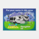 This doormat can be customised to show your name on top. When used outside of your RV, people will know who they are talking to when they see you. Non-slip rubber that won't crack or buckle, this mat resists fading, mould, and mildew and can be easily cleaned with a hose. This version is a 5th wheel similar to a Grand Design Solitude 310gk. It can be used indoors or out and makes a great welcome mat for your campsite, wherever you may go. To customise the name, click on the text "put your name in this area" and change it to whatever you want. If you don't see the text change on the actual design, you haven't done it quite right. You might have to double-click on some devices to be able to change it. Happy camping!