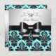 311-Blackberry Blue Damask Black Bow | Baby Shower Invitation