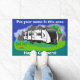 This doormat can be customised to show your name on top. When used outside of your travel trailer, people will know who they are talking to when they see you. Non-slip rubber that won't crack or buckle, this mat resists fading, mould, and mildew and can be easily cleaned with a hose. This version has a trailer similar to a Grand Design Reflection 315rlt trailer.  It can be used indoors or out and makes a great welcome mat for your campsite, wherever you may go.