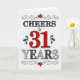 Bright red with black and white in swirly, curly patterns on a birthday card suitable for any person turning thirty-one years and you can offer your birthday cheers.