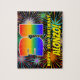 This upbeat and bold birthday-themed jigsaw puzzle design features a large number “31” having a multicolored rainbow spectrum inspired gradient pattern. It also features the message “HAPPY 31st BIRTHDAY,”, and a custom recipient name. The background features an eye-catching, colourful, bursting celebratory fireworks-inspired pattern. A cheerful, personalised birthday puzzle like this might be a fun way to deliver a birthday greeting message to somebody who is celebrating their thirty-first birthday. [~Z0000605]