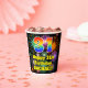 This joyful and colourful birthday themed paper cup design features a large number “31” having a rainbow spectrum gradient inspired pattern. It also features the message “Happy 31st Birthday,”, and a customisable name. The background features a vibrant and colourful pattern inspired by the look of bursting celebratory fireworks. Colourful, vibrant paper cups like this might be fun to use at a birthday celebration/party being held in celebration of somebody’s 31st birthday. [~Z0000539]