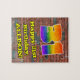 This fun and exciting urban graffiti and street art themed birthday jigsaw puzzle design features a large number “31” with a colourful rainbow spectrum gradient inspired pattern, along with the message “Happy 31st Birthday,”, and a customisable name. The background features a brick wall pattern. A vibrant, customisable birthday puzzle like this might be a fun way to deliver a birthday greeting message to somebody who is celebrating their thirty-first birthday. [~Z0000545]