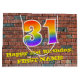 This vibrant and colourful birthday gift bag design, inspired by graffiti, features a large number "31" having a rainbow spectrum gradient inspired pattern. It also features the message "Happy 31st Birthday,", and an editable name. The background features a brick wall style pattern. A fun gift bag like this might be a fun way of wrapping a birthday present or gift being given to somebody who is celebrating their thirty first birthday. [~Z0000522]