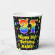 This cheerful and joyful birthday-themed paper cup design features a large number “31” having a rainbow spectrum gradient inspired pattern. It also features the message “Happy 31st Birthday,”, and a customisable name. The background features a vibrant and colourful pattern inspired by a field of stars. Colourful, vibrant paper cups like this might be fun to have at a birthday celebration being held in celebration of somebody’s 31st birthday. [~Z0000540]