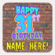 This fun birthday-themed square sticker design features the message “HAPPY 31ST BIRTHDAY,” having a colourful, vibrant, urban street art and graffiti inspired appearance, along with an editable recipient name. The background features a brick wall inspired pattern. Vibrant, fun, personalised stickers like this might be given as a birthday present, or used while wrapping gifts, or perhaps used as a birthday party decoration when celebrating somebody’s 31st birthday. [~Z0000535]
