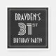 This stylish and 1920s-1930s style inspired thirty-first birthday party paper napkin design features a customisable name, a fancy art deco style inspired number “31st”, the message “BIRTHDAY PARTY!”, and a multi-line border. It has a black-coloured background by default, but it can be customised to a different colour, if desired. Paper napkins like these might be used when celebrating somebody’s thirty first birthday. [~Z0000616]