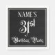 This ornate and elegant birthday paper napkin design features a personalised name and the message “31st Birthday Party”. The large number “31st” and the words “Birthday Party” are in opulent script-style text, and the background is coloured black by default (although it can be customised). Elegant, elaborate paper napkins like this might be useful to have at a birthday celebration being held to celebrate somebody’s 31st birthday. [~Z0000563]