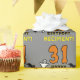 This spooky and scary Hallowe'en birthday themed wrapping paper design features a large number "31". It also features the message "HAPPY BIRTHDAY,", and a personalized name. There are also depictions of a bat and a ghost on the front. Wrapping paper like this might be a fun way to wrap presents that are being given to somebody who was born on Halloween (October 31st) and who is celebrating their thirty first birthday. [~Z0000411]