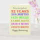 32nd wedding anniversary card counting down the years, days, months, hours, and minutes that you have been married. Funny, but with a romantic verse inside. A card to give pause for thought! Leap years have been taken into account!